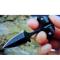 Le principe du Push Dagger est qu'il tient parfaitement dans le creux de la main afin que sa petite lame tranchante et robuste, dépasse entre l'index et le majeur. Il permet donc de se défendre en parant les coups poings fermés et de contre attaqué rapidement et efficacement en affligeant des coups dévastateurs à l'agresseur. Fabriqué d'une seule pièce en acier Inox noir. Lame à double tranchant de 5 cm. Longueur totale : 7,5 cm, Poids : 36. Livré avec étui kydex à clip. Lanière longue pour le porter au cou.