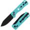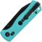 Manche ergonomique en G10 bleu Tiffany, offrant une prise en main confortable et sécurisée.