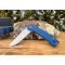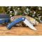 Couteau QSP Osprey Blue Micarta Handle 14C28N Blade IKBS Linerlock Clip pliant - Longueur ouvert 19cm - Longueur fermé 10.80cm - Longueur de lame 8.20cm - Epaisseur de lame 3mm - Lame de type drop point plain edge finition Satin - Lame en acier Sandvik 14C28N - Dureté 58-62HRC - Lame montée sur pivot avec roulements à billes en céramique - Platines en acier - Plaquettes du manche en Blue micarta - Trou dans le manche pour dragonne - Ouverture d'une main avec le flipper - Système de sécurité linerlock - Clip de poche