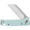 Ce couteau a une longueur totale ouverte de 17,93 cm et une longueur fermée de 10,16 cm. Son poids est remarquablement léger, à seulement 83 grammes. Le manche est réalisé en FRN (Nylon Renforcé à la Fibre) de couleur "Ice Cream Blue", un matériau composite connu pour sa légèreté, sa durabilité et sa bonne adhérence. L'épaisseur du manche est de 1,3 cm, offrant une prise en main confortable, et sa teinte unique et rafraîchissante ajoute une touche distinctive.