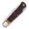 Le couteau pliant Queen Lockback est un classique américain, combinant des matériaux traditionnels et une fabrication soignée. Son manche en os Winterbottom ambré est mis en valeur par des platines en laiton qui ajoutent une touche chaleureuse et un contraste esthétique, tandis que sa lame en acier carbone 1095 est réputée pour son tranchant exceptionnel et sa facilité d'affûtage.