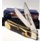 Le Queen USA Made Linerlock Trapper a une longueur fermée de 11,4 cm. Il est équipé de deux lames en acier au carbone 1095, un matériau haut de gamme réputé pour sa capacité à conserver un tranchant exceptionnel. La lame principale, de style Clip Point, est dotée d'un verrouillage par Linerlock pour une sécurité accrue. La deuxième lame, de style Spey Point, offre une polyvalence pour une variété de tâches. Les deux lames mesurent 8,1 cm.