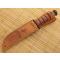 Le manche en kraton assure une bonne prise en main. l'acier KaBar 1095 est très correct pour un couteau utilitaire et facile à affûter (et je ne suis pas un maître en la matière). En sortie de boîte il coupe très bien (prudence).