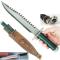 Reproduction du Poignard de John Rambo I First Blood Standard Edition à lame fixe - Longueur totale 35.56cm - Longueur de lame 22.86cm - Lame en acier inox - Fonction scie sur le haut - Garde en acier avec fonctions tournevis - Manche en cordelette - Manche creux avec kit de survie - Etui cuir - License officiel
