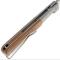 Le manche en titane, associé à des plaquettes fixes en Micarta Naturel, allie durabilité et élégance. Un mécanisme de verrouillage Frame Lock robuste garantit un fonctionnement sûr, tandis que le trou pour lanière et le clip de poche réversible profond offrent fonctionnalité et polyvalence pour un usage quotidien.