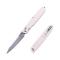 Le couteau EDC Real Steel G5 Metamorph Ivory G10 Handles Sandvik 14C28N Satin Plain Blade Button Lock Clip pliant - Longueur ouvert 20.70cm - Longueur fermé 11.70cm - Longueur de lame 8.99cm - Epaisseur de lame 3mm - Lame de type drop point plain edge finition satin - Affutage hollow - Lame en acier 14C28N - Dureté 58-60HRC - Plaquettes du manche en G10 - Ouverture d'une main avec le thumb - Système de sécurité Button Lock - Clip de poche