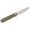 Le couteau pliant Real Steel Iris est un couteau de poche moderne et discret. Sa lame de style drop point est fabriquée en acier inoxydable 12C27, un matériau réputé pour son équilibre entre la dureté, la ténacité et la résistance à la corrosion. La finition de la lame est satinée et l'affûtage est de type "flat grind" (plat). Son manche en G10 vert offre une prise en main solide et confortable. Le couteau est doté d'un mécanisme de verrouillage liner lock fiable et s'ouvre de manière extrêmement fluide grâce à son front flipper et à son système de roulement à billes. Le clip de poche "deep carry" en fil permet un transport discret, avec une option de transport à droite ou à gauche.