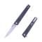 Couteau EDC Real Steel Kikashi Black G10/Carbon Fiber 14C28N SW Blade IKBS Linerlock Clip pliant - Longueur Totale : 20,3 cm - Longueur Fermée : 11,3 cm - Longueur de Lame : 9 cm - Lame en Alleima 14C28N finition stonewash - Dureté de 59 HRC - Épaisseur de la Lame : 0,3 cm - Lame de type drop point plain edge - Affutage Flat - Platines en acier - Plaquettes du manche en fibre de carbone et G10 noir - Trou dans le manche pour dragonne - Ouverture d'une main avec le flipper - Mécanisme de Verrouillage : Liner lock - Clip de poche tip-up, droitier/gaucher - Poids 70.02grs