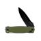 Couteau EDC Real Steel Muninn Od Green VG-10 Spear Point Blade G10 Handles Slide Lock Clip pliant - Longueur ouvert 20.87cm - Longueur fermé 11.68cm - Longueur de lame 9.19cm - Epaisseur de lame 3mm - Lame de type spear point plain edge finition Blackwash - Affutage flat - Lame en acier VG10 - Dureté 59-61HRC - Platines en acier - Plaquettes du manche en Black G10 - Ouverture d'une main avec le thumb - Système de sécurité linerlock - Clip de poche
