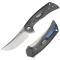Le manche est en Micarta noir usiné, un matériau composite qui offre une prise en main solide et un look élégant. Le couteau est doté d'un mécanisme de verrouillage Pivot Lock, qui assure un blocage sécurisé et fiable de la lame. L'ouverture est rapide et fluide grâce à un pivot monté sur des roulements à billes en céramique. Un clip de poche en titane réversible permet un transport pratique.