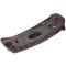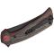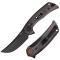 Le manche est en Micarta rouge et noir usiné, un matériau composite qui offre une prise en main solide et un look élégant. Le couteau est doté d'un mécanisme de verrouillage Pivot Lock, qui assure un blocage sécurisé et fiable de la lame. L'ouverture est rapide et fluide grâce à un pivot monté sur des roulements à billes. Un clip de poche en titane réversible permet un transport pratique.