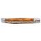 Le manche en bois d'olivier confère à ce couteau une esthétique naturelle et élégante, tout en assurant une prise en main confortable. La couleur bois naturel du manche s'harmonise parfaitement avec la lame blanche, créant un ensemble visuellement attrayant.