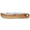 Le manche en bois de cade confère à ce couteau une esthétique naturelle et élégante, tout en assurant une prise en main confortable. La couleur bois naturel du manche s'harmonise parfaitement avec la lame blanche, créant un ensemble visuellement attrayant.