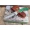Matériau du manche : Bois de zèbre et os teinté vert texturé (jigged bone)