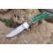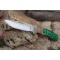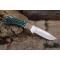 Le manche de 10,8 cm est une combinaison attrayante de bois de zèbre et d'os teinté vert texturé (jigged bone), complété par des mitres (bolsters) en acier inoxydable pour une finition soignée et une durabilité accrue. Ces matériaux offrent une prise en main confortable et un cachet authentique.