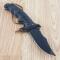 La lame est forgée en Lame Acier 420, un acier inoxydable reconnu pour sa grande résistance à l'oxydation et sa facilité d'entretien. Elle bénéficie d'une finition Black (noire) mate pour une discrétion totale, affichant une dureté de 54-56 HRC. Le déploiement est foudroyant grâce au système Assisted Opening (ouverture assistée), activable par l'ouverture flipper (Extended tang), permettant une mise en fonction instantanée d'une seule main.
