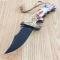Le manche est fabriqué en Black ABS hautement résistant, doté de finger grooves (rainures pour les doigts) profondes pour une prise en main ergonomique et sécurisée. Le décor "Eagle and U.S. Flag" apporte une dimension artistique et symbolique unique. Le verrouillage est assuré par un mécanisme Linerlock robuste. Il dispose d'un trou pour lanière (lanyard hole) et d'un clip de poche en acier pour un transport pratique.