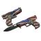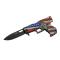 Couteau EDC à Ouverture assistée. 12.07cm fermé. Lame de 9,53 cm en acier inoxydable avec finition noire. Manche en ABS forme de pistolet. Clip de poche. Ouverture d'une main avec le pouce & le flipper. Motif du manche Land of the free. Système de sécurité linerlock.