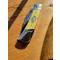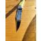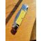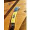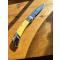 Manche en polymère jaune avec écusson incrusté et mitres en nickel argenté.