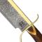 Couteau Rough Rider Gold Star Bowie Damascus 256 Layers Stag Handle Leather Belt Sheath à lame fixe - Longueur totale 49.53cm - Longueur de lame 36.83cm - Epaisseur de lame 9.52mm - Lame de type clip point plain edge - Lame en acier damas 256 Couches - Garde en laiton - Manche en bois de cerf - Etui cuir