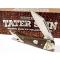 Le Rough Ryder Tater Skin Brown Burlap Lady Leg est un couteau pliant traditionnel qui allie des matériaux de qualité à un design classique. Il est doté d'une lame Clip Point en acier 440 et d'un manche en micarta de jute marron distinctif, conçu pour ressembler à une jambe de femme portant une chaussure à talon haut. L'image de la boîte met en évidence la série "Tater Skin Brown Burlap Micarta".