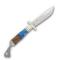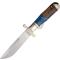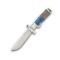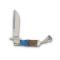 Ses caractéristiques principales incluent une lame de style Drop Point en acier 440 avec une finition satinée, offrant une bonne performance de coupe pour diverses tâches. Le manche est orné de bois et de résine dans un motif Pandora Swirl, créant un look visuellement captivant. Ce couteau utilise un mécanisme Slipjoint traditionnel et intègre une garde pivotante qui agit comme un élément de sécurité pour aider à prévenir la fermeture accidentelle lors de l'utilisation.