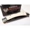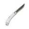Le Rough Ryder Tuxedo Series Bow Trapper est un couteau pliant élégant avec une bonne performance de coupe grâce à sa lame en acier 440. Son manche en micarta blanc offre une prise en main confortable et un aspect raffiné. Le trou pour cordon de sécurité ajoute à sa praticité. Son design classique en fait également une belle pièce de collection.