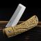 La lame de type Cleaver est fabriquée en acier inoxydable VG-10, offrant un bon équilibre entre performance de coupe et résistance à la corrosion. Le manche en laiton procure une prise en main confortable et un aspect esthétique chaleureux. Le mécanisme Slip Joint assure un maintien sûr de la lame en position ouverte et fermée.