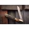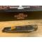 Le manche est composé de plaquettes en Os Jigged Cannelle avec des doublures noires (liners) qui contrastent joliment. Les bolsters sont lignés et le couteau est doté d'un bouclier "Spade" (Pique) distinctif. La longueur fermée est de 9,53 cm pour une longueur totale ouverte de 16,51 cm.