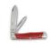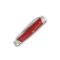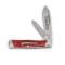 Le manche est fabriqué en os lisse rouge, un matériau qui offre une prise en main confortable et un look distinctif. Les mitres en maillechort (nickel silver), les rivets et les doublures en laiton complètent le manche, ajoutant une touche de robustesse et de classicisme. Un écusson représentant un fusil "long rifle" et une gravure sur la lame principale renforcent son caractère unique.