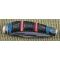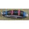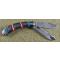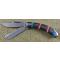 Le manche est une véritable pièce de collection composée de plaquettes en Red and Blue Stone (reconstitution de pierre rouge et bleue de style turquoise). L'ensemble est magnifié par des incrustations en Nickel Silver (maillechort) aux motifs sud-ouest et des mitres richement travaillées. La structure est montée sur des platines en laiton (brass liners), garantissant une longévité exceptionnelle. Ce modèle utilise un mécanisme de verrouillage à cran forcé (Slipjoint), traditionnel et fiable.