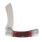 Couteau EDC Rough Ryder Reserve Balboa Red Bone Handle D2 Blade Slip Joint pliant - Longueur ouvert 19.05cm - Longueur fermé 10.80cm - Longueur de lame 8.60cm - Lame de type Cleaver plain edge finition satin - Lame en acier D2 - Dureté 59-61HRC - Platines en laiton - Mitres en acier - Plaquettes du manche en os - Ouverture à 2 mains - Système à cran forcé - Boite collector