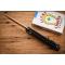 Le Rough Ryder Slide Lock est doté d'une lame de 6,985 cm de style Wharncliffe modifié avec un tranchant lisse, fabriquée en acier outil D2. L'acier D2 est très apprécié pour sa performance de coupe durable et sa bonne résistance à l'usure, avec une dureté typique de 59-62 HRC. La finition satinée bicolore de la lame lui confère un aspect distinctif et une résistance accrue à la corrosion. L'émouture plate assure une géométrie de coupe efficace. Le manche de 10,16 cm (longueur fermée) est en G10 noir, offrant une prise en main solide et confortable.
