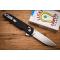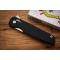 L'ouverture de la lame est rapide et fluide grâce au flipper et au système de pivot sur roulements à billes, garantissant une action douce à chaque utilisation. Le Slide Lock (verrouillage coulissant) assure un verrouillage sécurisé de la lame en position ouverte, tout en permettant une fermeture aisée et intuitive. Un clip de poche est intégré pour un transport pratique, en position Tip-Up et adapté au port côté droit.