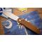 Le Rough Ryder Slide Lock est doté d'une lame de 6,985 cm de style Wharncliffe modifié avec un tranchant lisse, fabriquée en acier outil D2. L'acier D2 est très apprécié pour sa performance de coupe durable et sa bonne résistance à l'usure, avec une dureté typique de 59-62 HRC. La finition satinée bicolore de la lame lui confère un aspect distinctif et une résistance accrue à la corrosion. L'émouture plate assure une géométrie de coupe efficace. Le manche de 10,16 cm (longueur fermée) est en G10 Tan, offrant une prise en main solide et confortable.