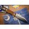 L'ouverture de la lame est rapide et fluide grâce au flipper et au système de pivot sur roulements à billes, garantissant une action douce à chaque utilisation. Le Slide Lock (verrouillage coulissant) assure un verrouillage sécurisé de la lame en position ouverte, tout en permettant une fermeture aisée et intuitive. Un clip de poche est intégré pour un transport pratique, en position Tip-Up et adapté au port côté droit.