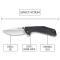 Couteau Actium Black G10 Handle D2 Blade Linerlock Clip pliant - Longueur ouvert 20.30cm - Longueur fermé 11.50cm - Longueur de lame 8.80cm - Epaisseur de lame 3mm - Lame de type drop point plain edge finition stonewash - Lame en acier D2 - Dureté 59-61HRC - Lame montée sur pivot avec roulements à billes (Ceramic Ball Bearing) - Platines en acier - Plaquettes du manche en G10 Black - Trou dans le manche pour dragonne - Ouverture d'une main avec le thumb & le flipper - Système de sécurité linerlock - Clip de poche