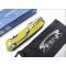 Le couteau SRM 7228 avec manche jaune en G10 est une belle découverte. Les finitions sont bonnes, la lame est bien épaisse, très bien affutée sortie d'usine. Le mécanisme de verrou est solide et il n'y a aucun jeu de lame. Le système d'ouverture de type disque de pouce est souple, un peu difficile au début mais parce que l'ensemble est bien monté et qu'il faut s'habituer à la manœuvre. Une fois que c'est fait, on découvre une détente franche et rapide. La fermeture est fluide, presque comme avec un drop-shut.
