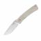 Sa lame Drop Point de 7,5 cm est fabriquée en acier inoxydable Sandvik 14C28N, un excellent choix pour un couteau d'usage quotidien grâce à sa grande résistance à la corrosion et sa facilité d'affûtage (dureté HRC 57-59). La lame présente une finition brossée.
