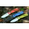 Couteau SRM Knives 7228 Ambi Lock D2 Satin Blade Orange G10 Handle Clip pliant - Longueur ouvert 16.80cm - Longueur fermé 9.86cm - Longueur de lame 6.90cm - Epaisseur de lame 3.10mm - Lame en acier D2 - Dureté 59-61HRC - Lame de type drop point plain edge finition Satin - Platines en acier 420 - Plaquettes du manche en Orange/Black G10 - Trou pour dragonne - Ouverture d'une main avec le thumb disk - Système de sécurité Ambi Lock - Clip de poche