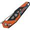 Couteau SRM Knives 9225 Ambi Lock D2 Blade Orange G10 Handle Clip pliant - Longueur ouvert 20.10cm - Longueur de lame 8.20cm - Epaisseur de lame 3.10mm - Lame en acier D2 - Dureté 59-61HRC - Lame de type drop point plain edge finition Bead blast - Platines en acier - Plaquettes du manche en Orange G10 - Trou pour dragonne - Ouverture d'une main avec le thumb hole - Système de sécurité Ambi Lock - Clip de poche