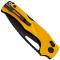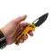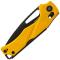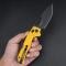 Le manche est fabriqué en G10 jaune, un matériau composite léger et durable qui offre une excellente prise en main, même dans des conditions humides.