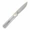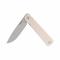 Le manche se distingue par une combinaison de matériaux : des plaquettes en G10 Ivoire texturé pour une excellente adhérence, et des inserts en acier inoxydable poli pour une solidité accrue et un look sophistiqué. L'ouverture de la lame est rapide et fluide grâce à l'ouverture flipper discret, monté sur un pivot à Roulement à Billes en Céramique. Le mécanisme de verrouillage Frame Lock assure une sécurité maximale pendant l'utilisation.