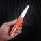 Couteau EDC Qrick 408L Green/Orange G10 Handle 14C28N Blade IKBS Ambi Clip Linerlock pliant - Longueur ouvert 19cm - Longueur fermé 10.70cm - Longueur de lame 8.20cm - Epaisseur de lame 3.10mm - Lame de type spear point plain edge finition satin - Lame en acier 14C28N - Dureté 57-59HRC - Platines en aluminium - Plaquettes du manche en G10 Green/Orange - Backspacer - Ouverture d'une main avec le front flipper - Système de sécurité linerlock - Clip de poche - Poids 75grs