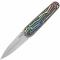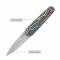 Le manche est une véritable pièce maîtresse, composé de plaquettes en G10 Rainbow (arc-en-ciel), offrant un dégradé de couleurs vibrant et une texture antidérapante pour une prise en main sécurisée. Le SRM Twin se distingue par son système d'ouverture "Invisible Flipper" ultra-fluide grâce à son pivot sur roulements à billes en céramique. La sécurité est assurée par le mécanisme Ambi Lock (Crossbar Lock), un système de verrouillage totalement ambidextre et extrêmement fiable.