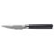La finesse de sa lame permet une coupe nette et précise, idéale pour les tâches délicates comme l'épluchage et la découpe de petits fruits et légumes. Le manche noir en G10, un matériau composite reconnu pour sa robustesse et sa résistance à l'humidité, assure une prise en main confortable et sécurisée, même après une utilisation prolongée.