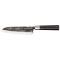 Sa conception en lame Damas souligne à la fois sa robustesse et son esthétique remarquable. Le manche en Micarta procure une prise en main solide et confortable, tandis que sa finition noire élégante renforce la sophistication de cet outil de cuisine. Le profil de lame Santoku, emblématique pour sa polyvalence, permet de trancher, hacher et couper avec aisance. Idéal pour la viande, le poisson ou les légumes.