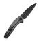 Lame en acier inox 8Cr13MoV finition "blackwash" avec "flipper", ouverture assistée et cran intérieur, d'une longueur de 7,5 cm.