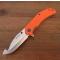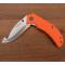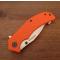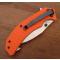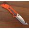 Visibilité et Grip : Le manche en G10 orange texturé avec un motif quadrillé assure une prise en main infaillible, même par temps de pluie ou avec des gants. Sa couleur vive permet de le repérer instantanément.