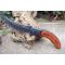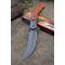 Couteau Scimitar Shinigami Lame Acier 3Cr13 Mitres Façon Damas Manche Bois Liner Lock Clip